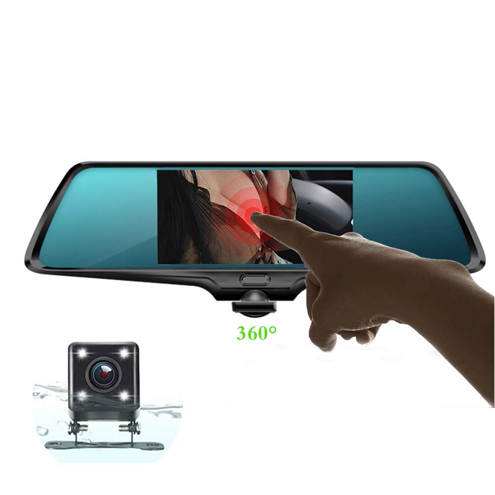 YOUANDMI Dashcam,360+140 Degrés Avant Voiture Camera avec Arriere cam,5in écran Tactile,Vision Nocturne,Batterie,Loop Recording et Capteur-G pour Surveillance,NoCard