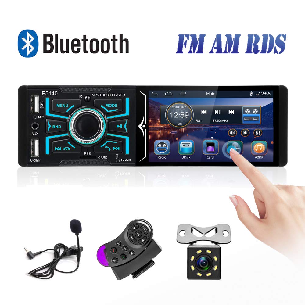 Bluetooth Autoradio 1 Din Camecho Écran Tactile 4 Pouces Voiture Stéréo FM AM RDS Récepteur Radio Double USB AUX-in Carte SD Port + Caméra de recul + Commande au Volant